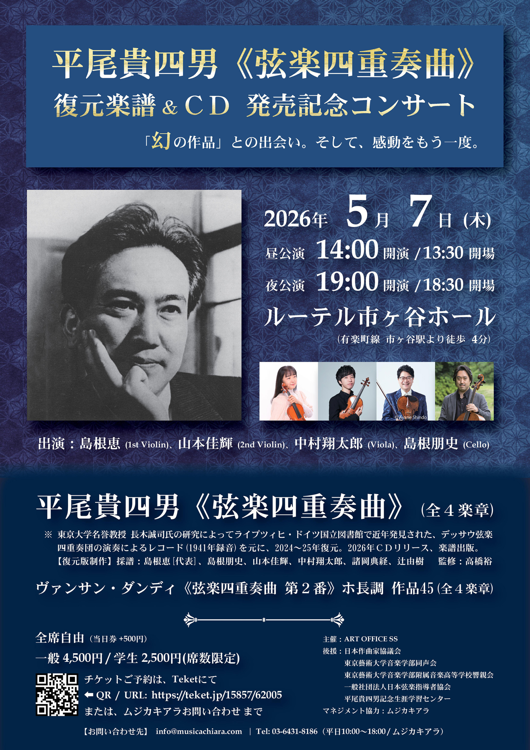 平尾貴四男《弦楽四重奏曲》復元楽譜&CD 発売記念コンサート