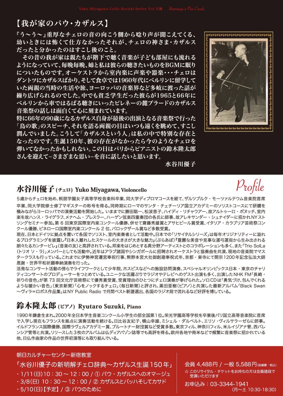 水谷川優子 チェロ・リサイタルシリーズ Vol.ⅩⅧ パウ・カザルス生誕150周年記念《カザルスへのオマージュ》